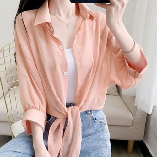 [오너클랜]인기상품 여름용 시스루 쉬폰 셔츠 휴가 바캉스룩 [WFLLADY_260304]