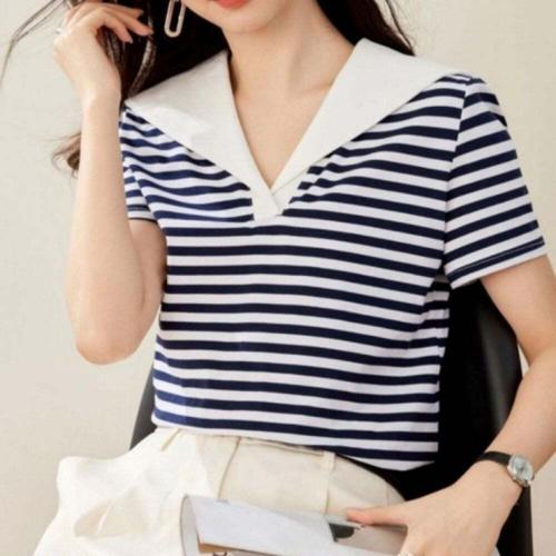 [오너클랜]인기상품 마린 스트라이프 반팔 셔츠 여름 바캉스 캐주얼 티셔츠 [WFLL89E_260304]