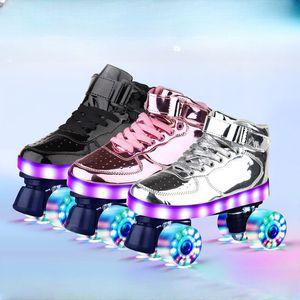 두 바퀴 어린이 Led 라이트 롤러 스케이트 신발 어린이를위한 소년 소녀 빛나는 스포츠 빛나는 스 니 커 즈 스케이트 보드 USB 충전
