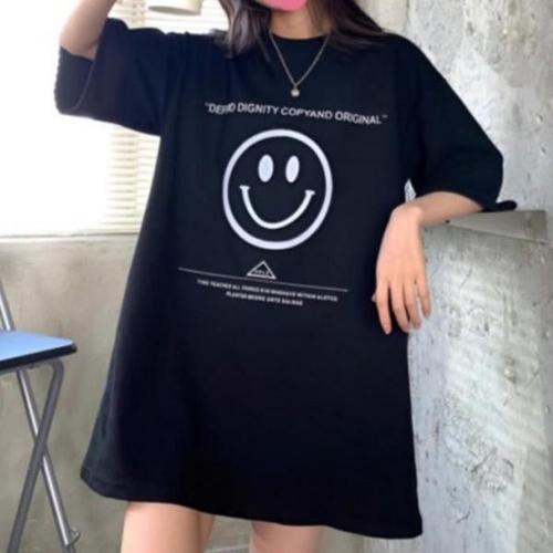 [셀러허브_여성트랜드패션]ONM 여성 빅사이즈 오버핏 롱 반팔 티셔츠 여자 여름 박스