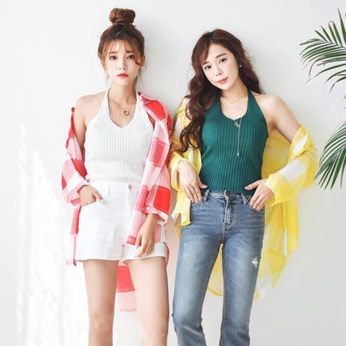 [다잇템]여자 하늘하늘 박스 빅사이즈 썸머 단가라 셔츠 (10080950A)