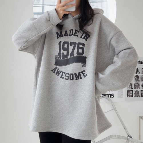 [엄지척]여자 박스 후드 티셔츠 오버 루즈 핏 회색 겨울 코디_19645948_667501