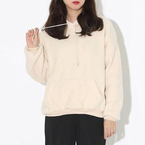 [엄지척]여자 데일리 편한 따뜻한 무지 박스 양털 후드 티셔츠_19613859_667501