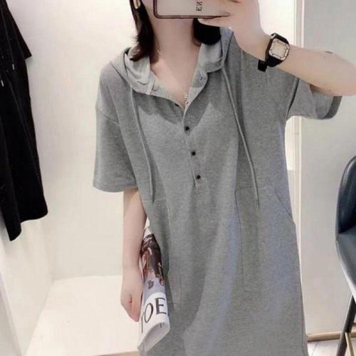 [다잇템]여자 박시 임부 후디 반소매 풀오버 큰사이즈 드레스 (7593562A)