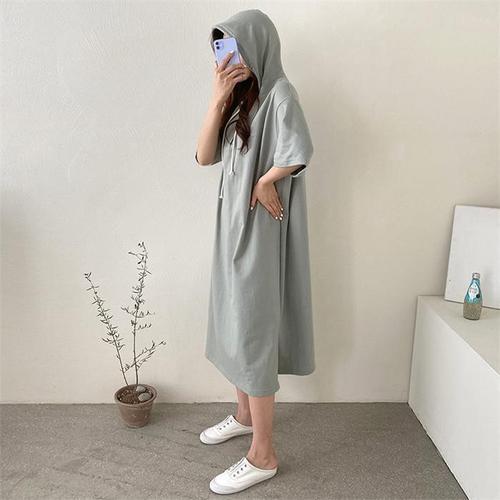 [오너클랜]인기상품 여름용 박시 후드 반팔 롱 원피스 여행 데일리룩 [WFLKZAM_260304]