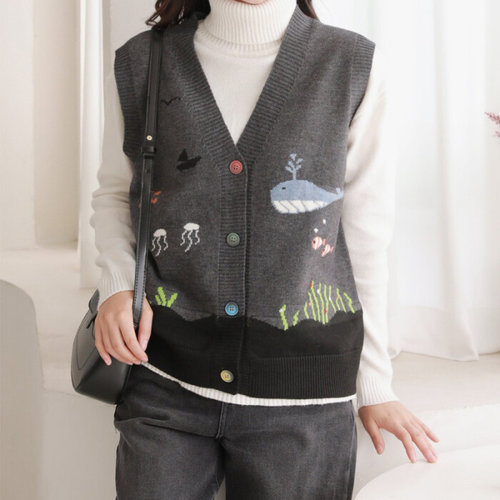 프롬하트 / 프롬하트 여성 박시 바닷속 니트조끼