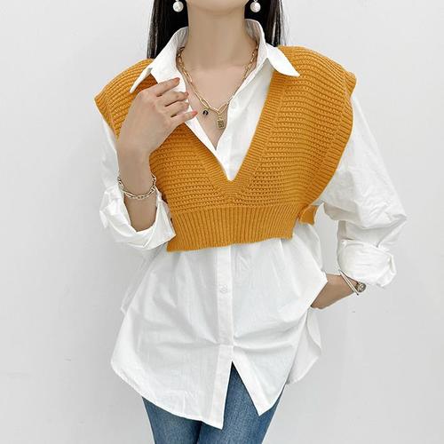 [금찌]금찌 레이빈 박시 남방 니트 베스트 세트 ST7835S