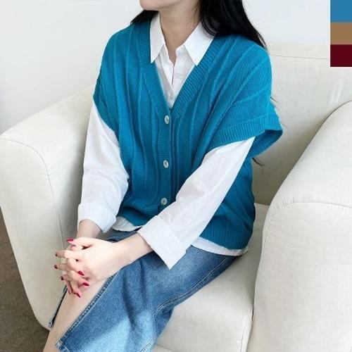 [다잇템]여자 박시 드롭숄더 브이넥 꽈배기 봄 니트조끼