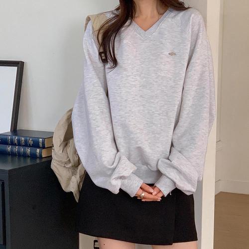 [옷자락]여성 브이넥 봄 펜던트 뒷면 라벨 캐주얼 박시 맨투맨