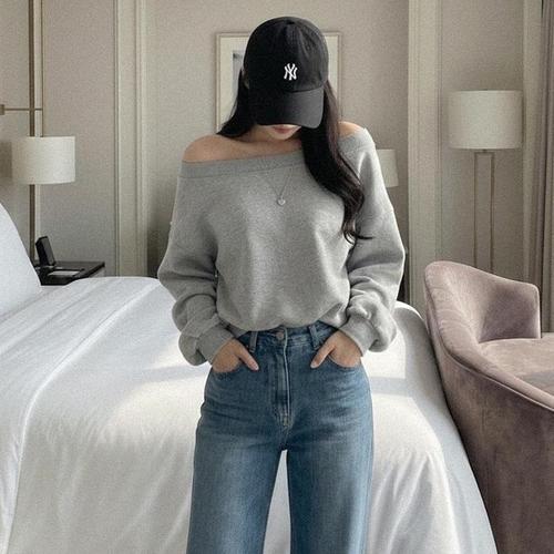 [다잇템]여자 롱슬리브 볼드숄더 봄가을 박시 맨투맨 (46255725)
