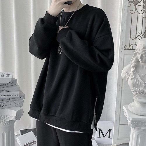 [셀럽하우스]밑단지퍼 SKEK7178 남자 맨투맨 무지 긴팔티셔츠 박시 맨투맨티
