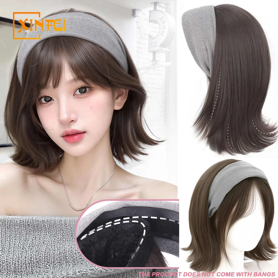합성 가발 회색 헤어밴드 여성용 반머리 가발 가을 겨울 신상 모자 짧은 롤 가발 커버 데일리 착용에 적합