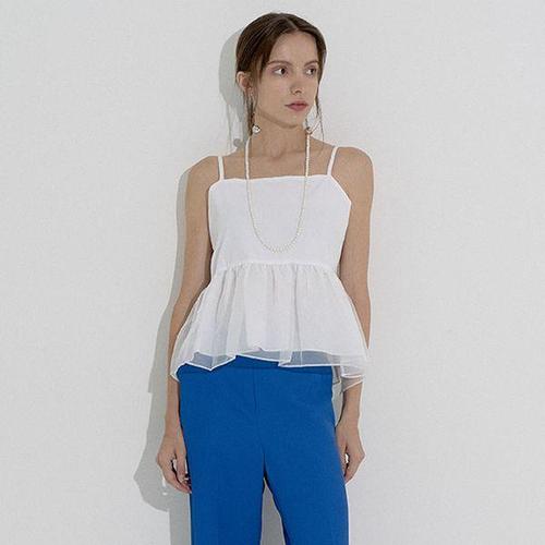 [오너클랜]인기상품 셔링 밴딩 플레어 뷔스티에 여성용 슬림핏 끈 나시 블라우스 [WFLKZTM_260304]
