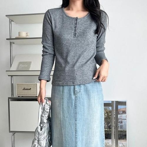 [다잇템][다잇템] 여자 골지 편한 반버튼 이너티 클래식 U넥 티셔츠_23387291_588872