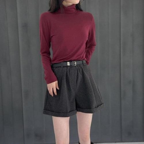 [신상오픈런]|CMP90DB|여성용 데일리 핀턱 롤업 벨트 모직 두꺼운 반바지_23460954_597559