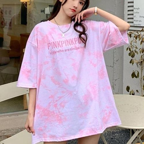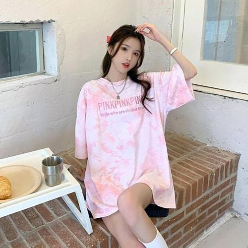 [엄지척]여자 데일리 스트릿 편한 여름 물감 영문 반발티셔츠_19558211_667501