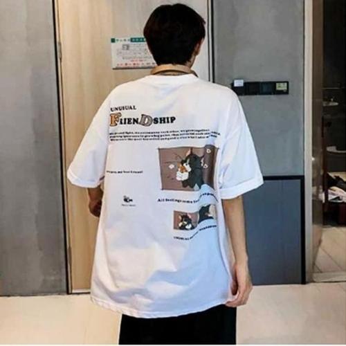 1+1 2종세트 남자 여름 빈티지 캐주얼 루즈핏 반팔 티셔츠 빅사이즈 데일리 프린팅 100% 순면 라운드넥 편안한 오버핏 반팔티