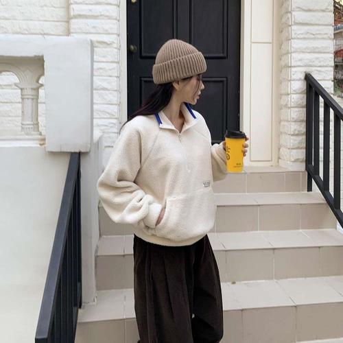 |KHT9EF3|여성용 캐주얼 플리스 반지퍼 맨투맨