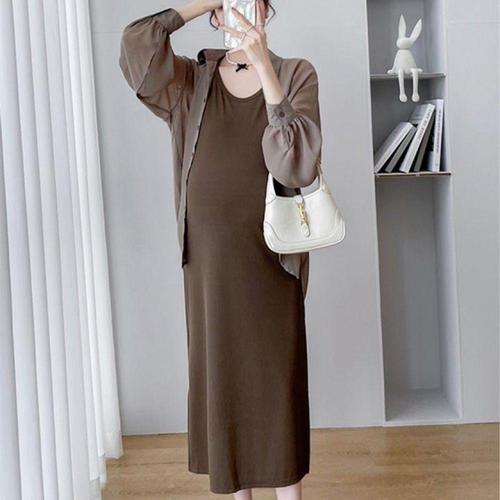 쫀쫀 반전 나시 롱원피스 시스루 셔츠 세트