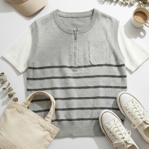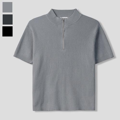 남자 하프 반집업 반팔 니트티 GN-KNH-Q018-그레이