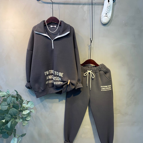 씨샵인더룸 / 펄슨 기모 레터링 반집업 맨투맨티셔츠 밴딩 조거팬츠세트 4color