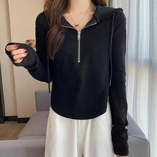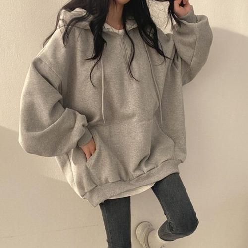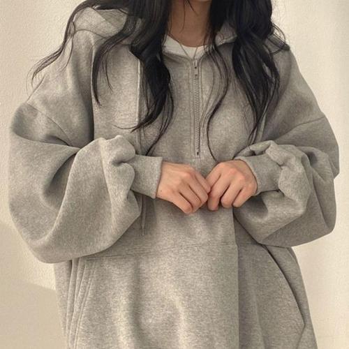 [엄지척]여자 반집업 후드티 베이직 지퍼후디 오버핏후드 무지_19613735_667501