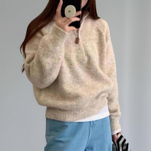 [미라클세븐]여성 키치 스타일 파스텔 후드넥 반집업 니트