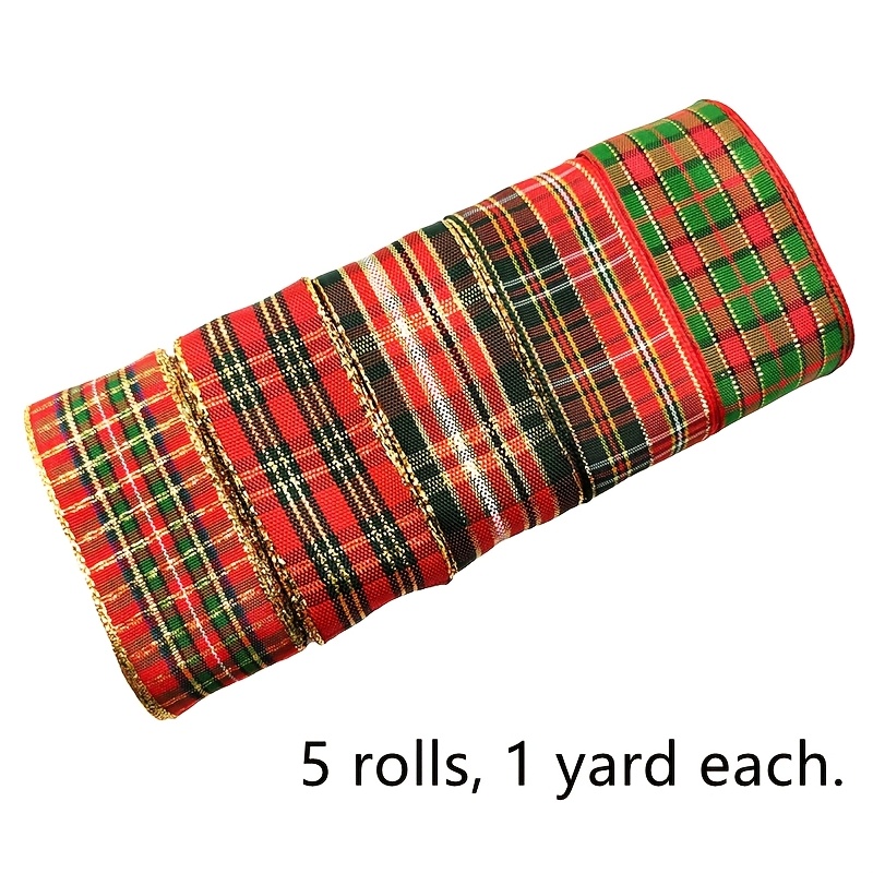 TEMU 크리스마스 새틴 리본 2.54cm 5롤 세트 (1롤 1야드), 레드 체크 무늬 와이어 엣지, 장식용 리본 보우, 선물 포장, 공예 및 홈 데코에 적합, 결혼식, 새해, 생일 및 발렌타인데이를 위한 인기 상품.