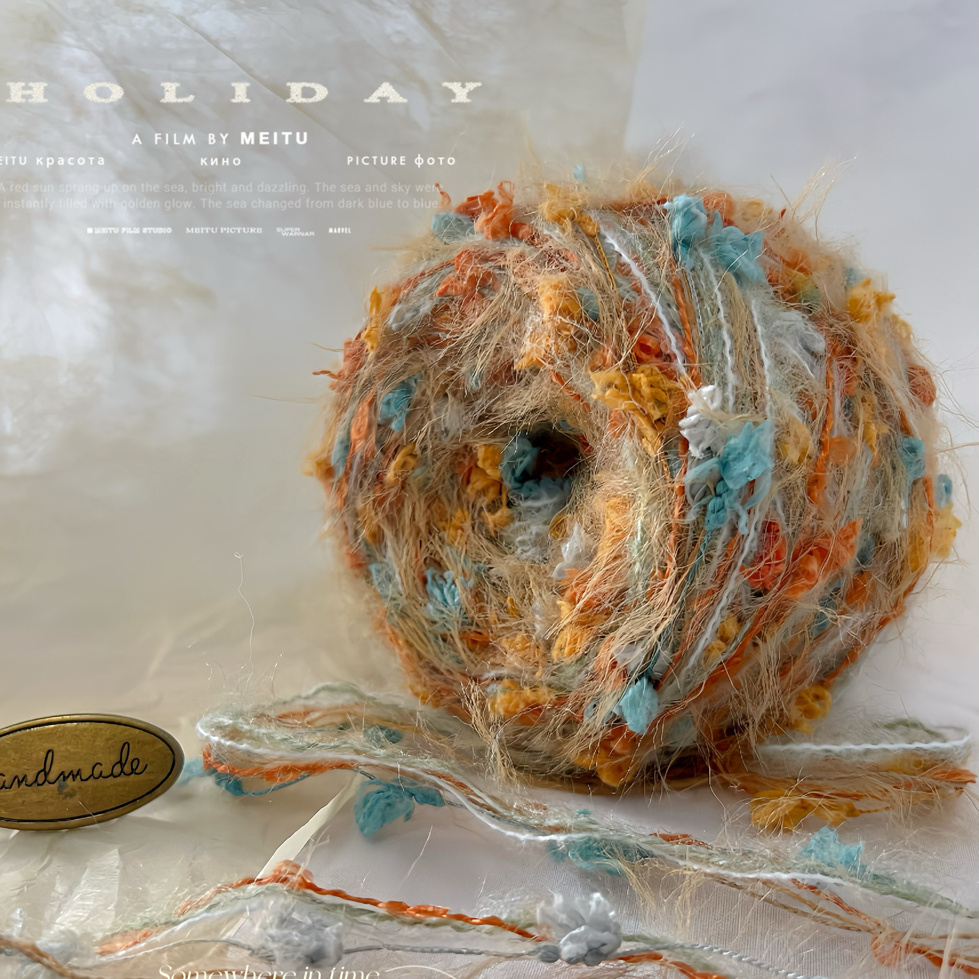 TEMU 1개 빈티지 플로럴 얀 - 80g 두꺼운 직조 코바늘 뜨개질 원단, 강황, 아프릭트, 베이지 & 라이트 블루 색상 - 내구성이 뛰어난 핸드메이드 공예 얀, 할로윈, 추수감사절, 크리스마스, 선물 포장용 - 비상업용 뜨개질 용품