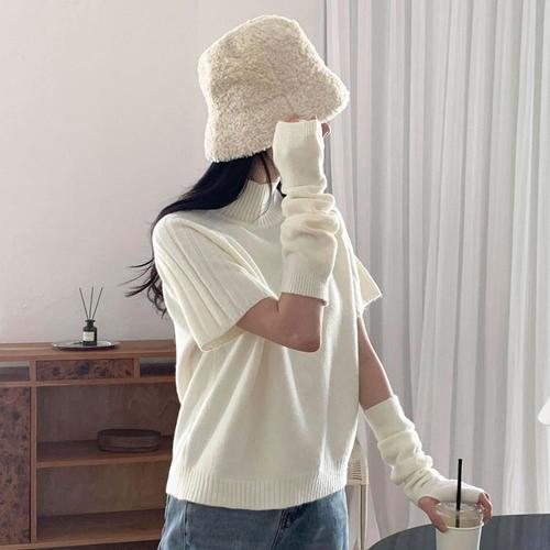 [옷자락]여성 가을 겨울 반팔 터틀넥 니트 워머 세트