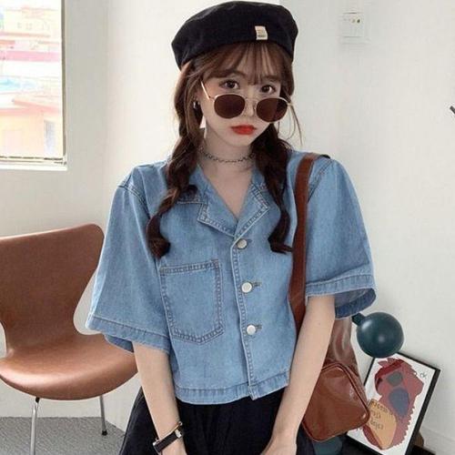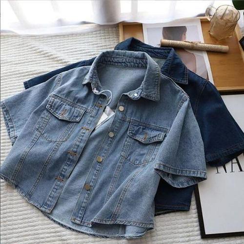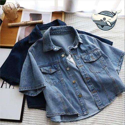 반팜 재킷 여성 숏 청자켓 데님 여름 반팔 크롭 데님