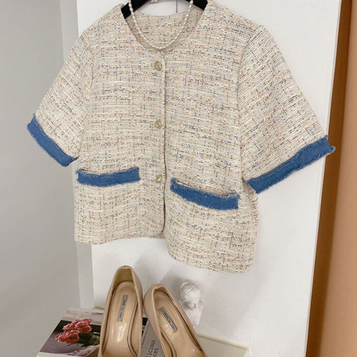 허니제이 / 디즈델 배색 데님 트위드 반팔 자켓(2color)