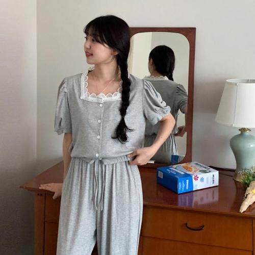 [린다샵]메브린 스퀘어넥 반팔가디건 밴딩 롱 팬츠 세트