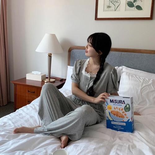 [미라클세븐][M7] 여자 반팔가디건 고무줄 스퀘어넥 롱 바지 세트