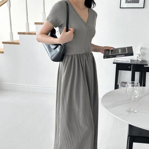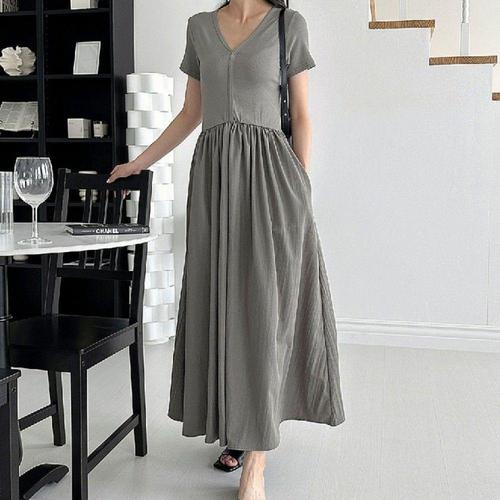 [오너클랜]인기상품 여름용 심플 반팔 롱 원피스 데일리 캐주얼 A라인 드레스 [WFLLB5Z_260304]