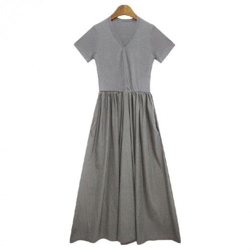 여성 반소매 캐쥬얼 롱 면혼방 컷아웃 원피스