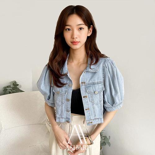 [에이샵][에이샵] 퍼프소매 반팔 데님 볼레로 자켓_ASJK020M25