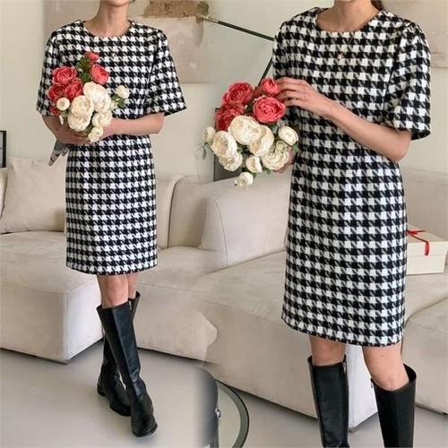 빅사이즈 212 제비체크반팔미니원피스 DRAK694