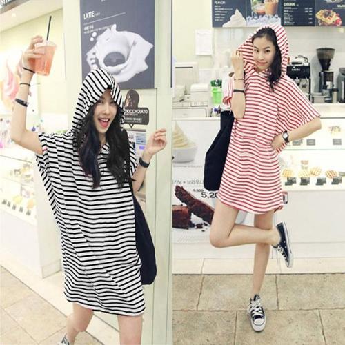 [리빌모아]여자 스트라이프 라운드 반팔 미니 원피스 DHTW-OPS-SN2481451