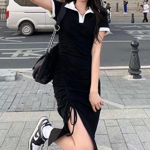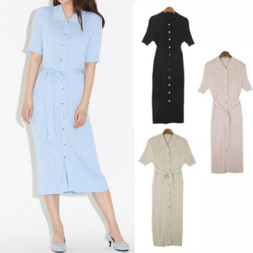 [오너클랜]인기상품 여름용 카라 긴팔 니트 허리끈 포함 반팔 원피스 [WFLKYOM_260304]