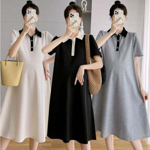 [오너클랜]인기상품 여성용 심플 카라 미디 반팔 원피스 임산부 여름 의류 [WFLKZOH_260304]
