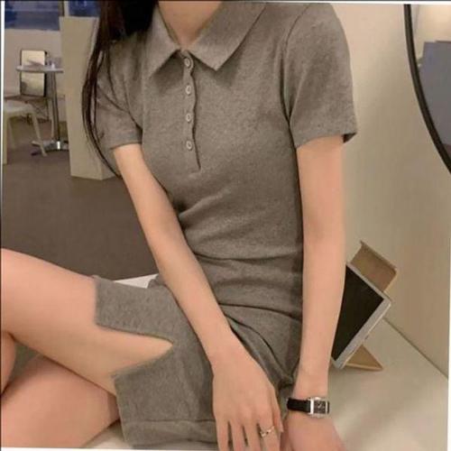 [에이치플러스몰]여성 카라 캐주얼 옆트임 반팔 필수템 미니원피스 여