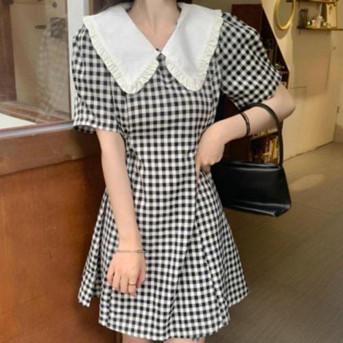[오너클랜]인기상품 여성용 여름 체크 빅카라 미니 반팔 원피스 데일리룩 [WFLLAC2_260304]
