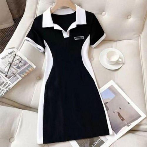 [오너클랜]인기상품 여성 카라 반팔 미니 원피스 여름 배색 하객룩 캐주얼 치마 [WFLKZ1E_260304]