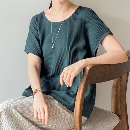 [신상오픈런]여성 여름 라운드넥 플리츠 반팔 티셔츠 블라우스