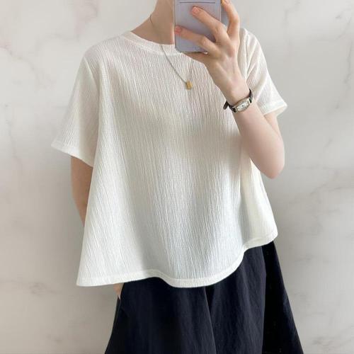 [신상오픈런]여성 여름 반팔 티셔츠 링거넥 라운드형 엠보 블라우스 출근용