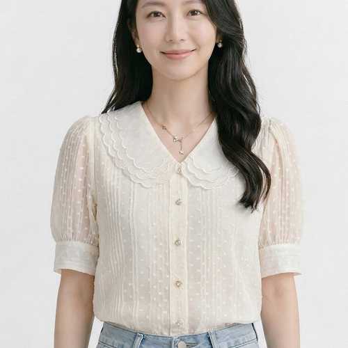 NB3117 청순 여리여리 물결카라 도트 퍼프 반팔 블라우스