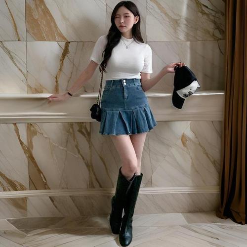 [다잇템]여자 모크넥 슬림핏 반팔티셔츠 (30221943A)