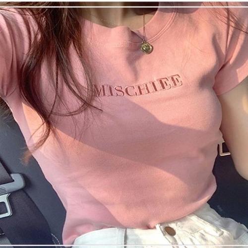 [엄지척]여성 여름 슬림핏 반팔티셔츠 영문 라운드넥 반팔티_19599745_667501