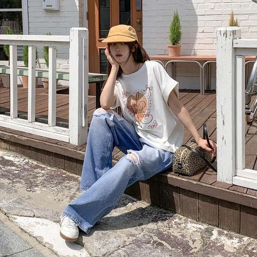 [다잇템][다잇템] 여성 프린팅 코튼 캐쥬얼 폴딩 빅사이즈 하트 반팔티_23226429_588872